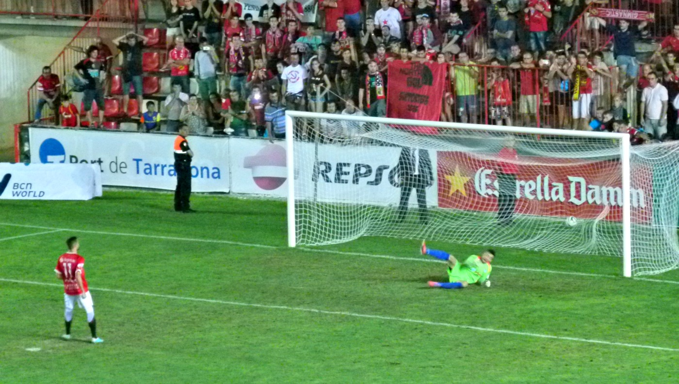 Ferran Giner llença el penal decisiu i classifica al Nàstic. Foto:Joan Marc Salvat