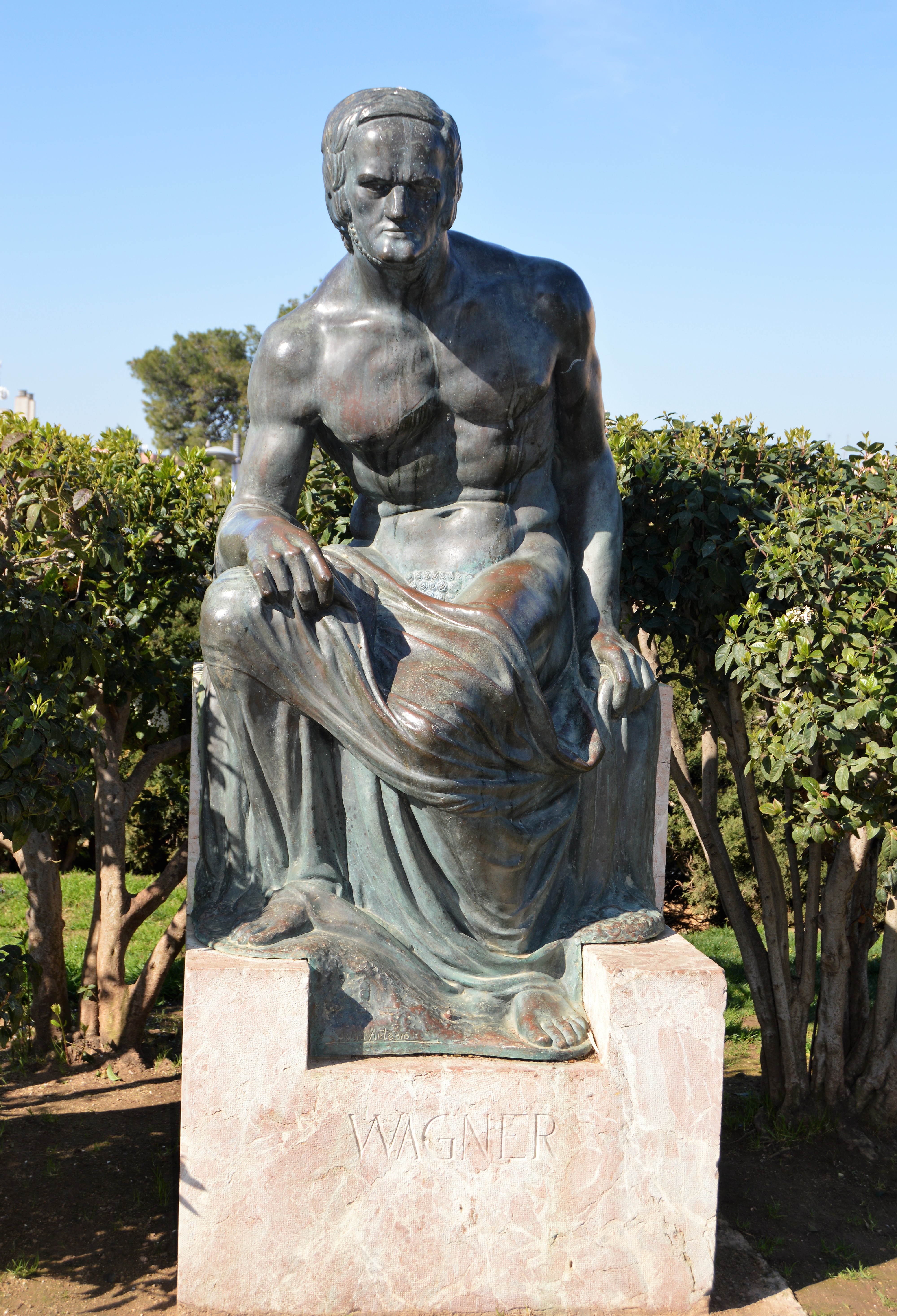 L’itinerari ens porta fins al final dels jardins del Camp de Mart, a una estàtua que passa força desapercebuda. Una obra dedicada a Richard Wagner realitzada per l’escultor Julio Antonio. Un projecte d’encàrrec que havia de ser de tamany enorme i que es va quedar a mig camí per l’esclat de la Primera Guerra Mundial.