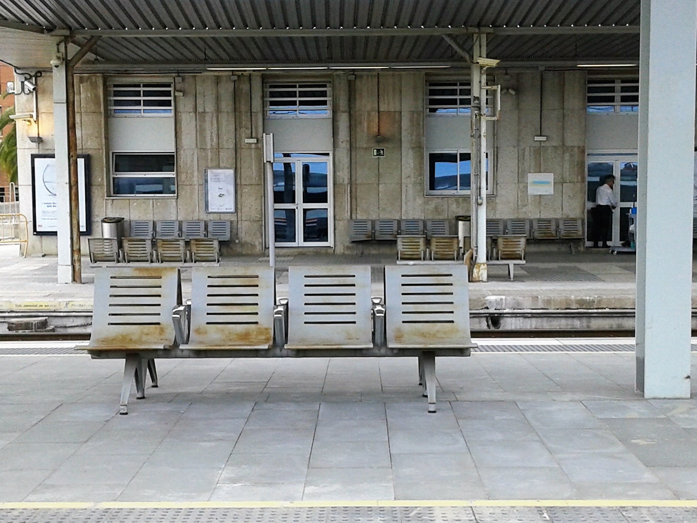 De moment, sobta veure bancs antics i rovellats col·locats a la nova andana, encara fora de servei, que donarà accés a les vies 2 i 6. La imatge que acompanya l’article, captada aquest cap de setmana, encara provoca més vergonya i indignació. Ens volen dir els del Ministerio de Fomento que no tenen diners per comprar uns seients nous de trinca per a l’estació? També crida l’atenció que la nova marquesina d’aquesta andana serà tan curta com l’anterior.