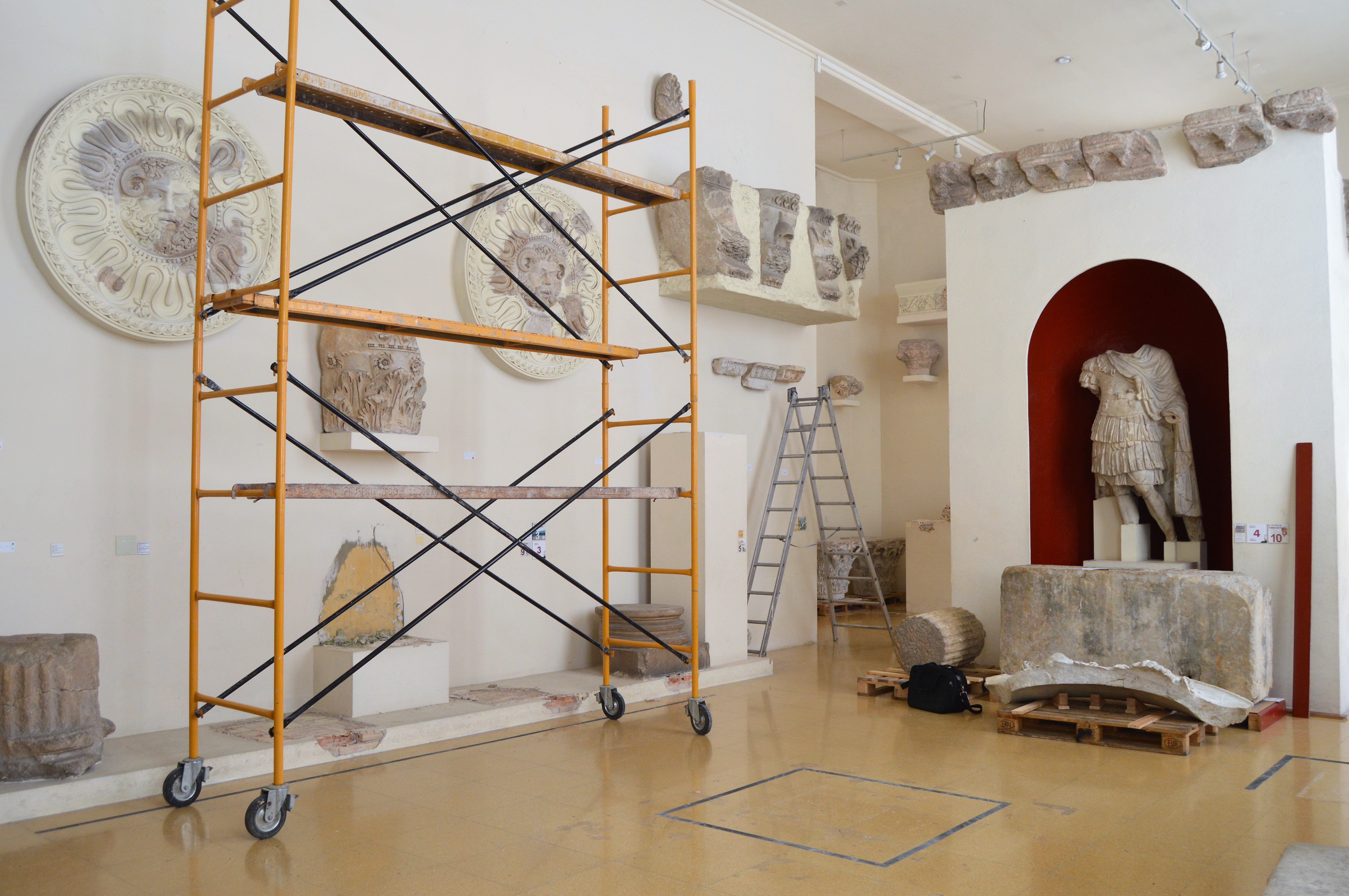 Museu obert per obres. Edifici tancat temporalment al públic, però amb molta gent dins treballant-hi. El Museu Nacional Arqueològic de Tarragona, a la plaça del Rei, no està buit i en silenci aquests dies. Equips de museòlegs, museògrafs, documentalistes, restauradors, conservadors, manipuladors i instal·ladors participen en la logística necessària per traslladar les obres al tinglado 4 del Port o al magatzem.
