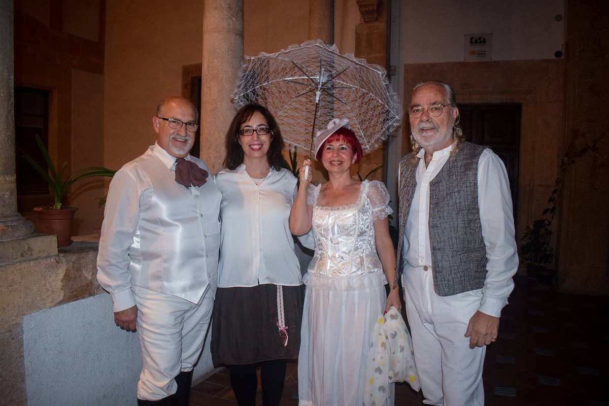 Mayelen Fouler, la segona per la dreta, vestida d’època en la presentació de la seva segona novel·la. Foto: cedida.