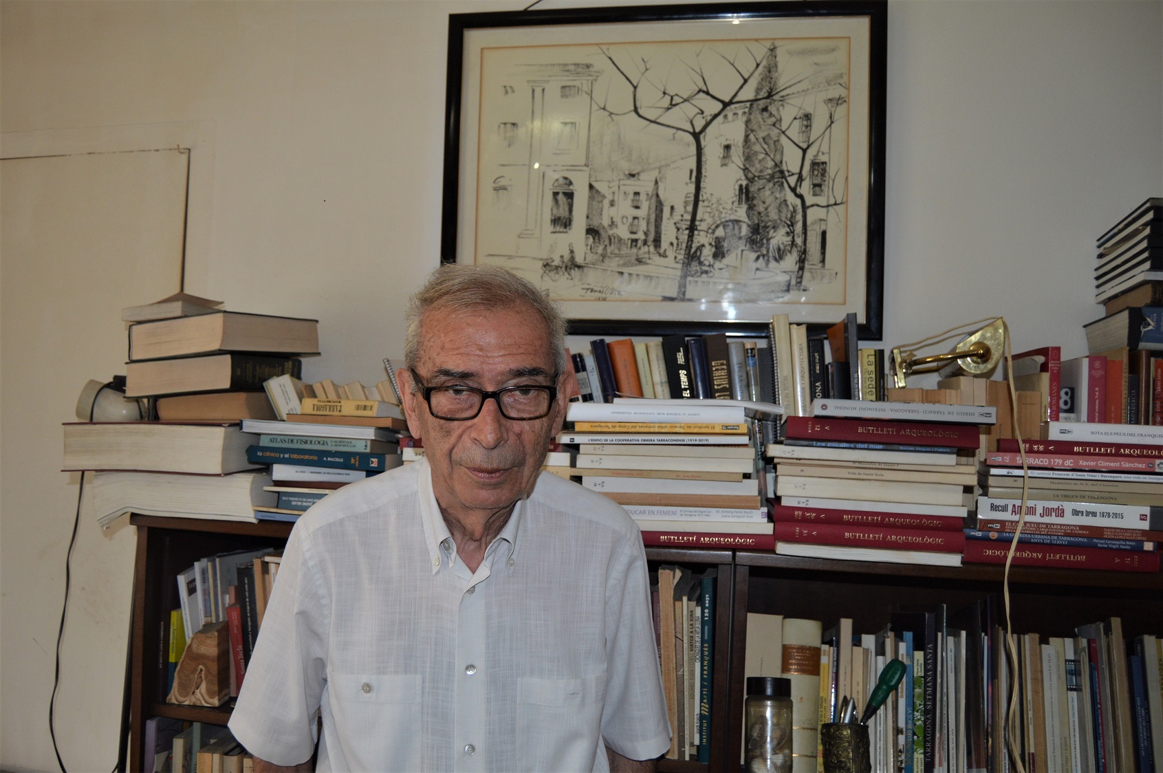 Santiago Mallafré, el passat estiu al despaxt de casa seva, a la Rambla Nova. Foto: Ricard Lahoz.